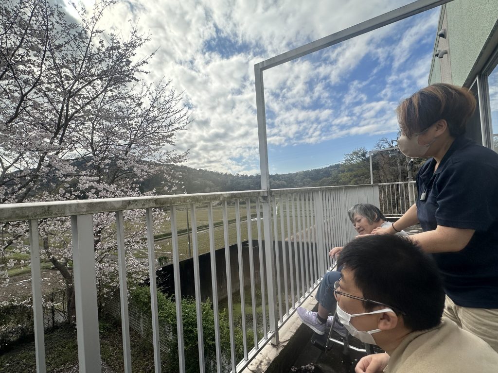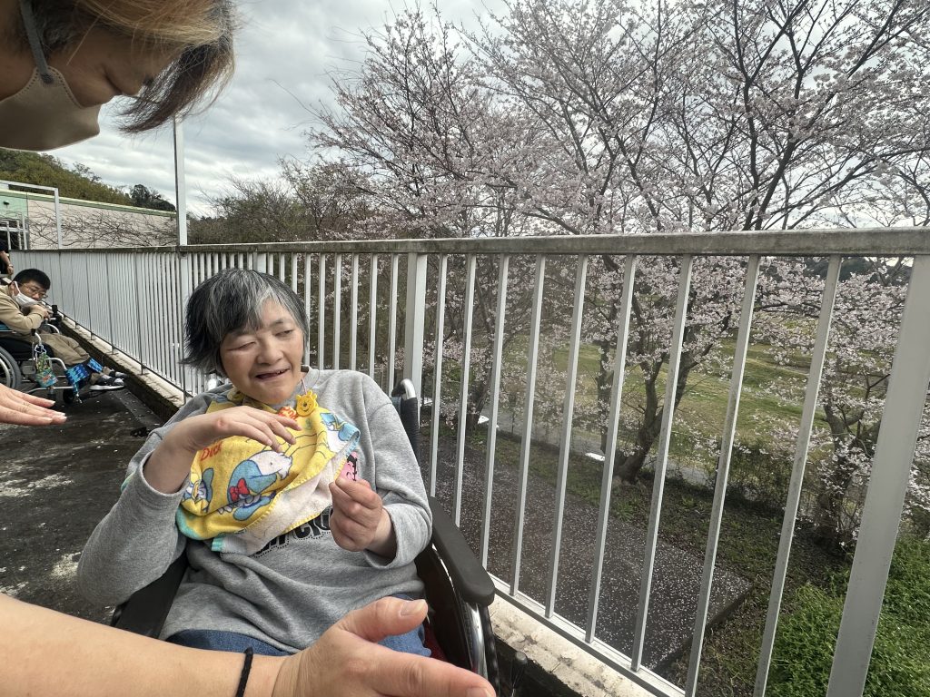 利用者の皆さんと今週は【🌸さくらweek】と名付け、温かい陽ざしの中で花見を行っています🌸